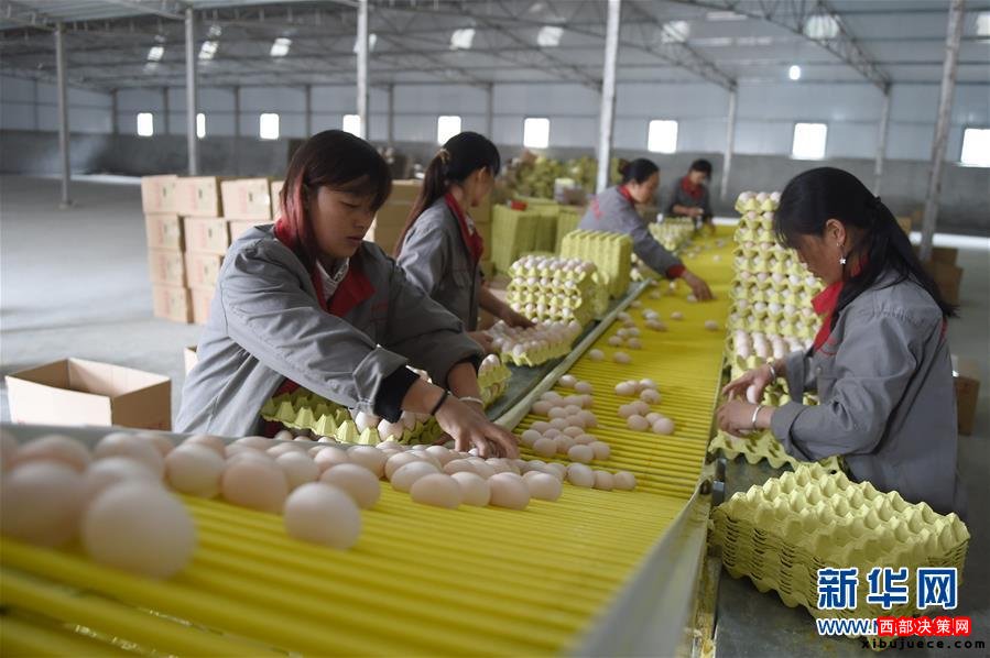 在貴州省畢節(jié)市七星關(guān)區(qū)五里坪村,當(dāng)?shù)剞r(nóng)戶在一個屬于精準(zhǔn)扶貧項目的養(yǎng)雞場內(nèi)分揀雞蛋(2015年11月15日攝)。畢節(jié)市自2014年開始“私人訂制”式精準(zhǔn)扶貧工作,根據(jù)當(dāng)?shù)刎毨魧嶋H情況為其制定扶貧方案,扶貧變“輸血”為“造血”。黨的十八大以來,以習(xí)近平同志為總書記的黨中央高瞻遠(yuǎn)矚、深謀遠(yuǎn)慮,以高度的政治感、使命感和責(zé)任感,把扶貧開發(fā)工作提升至治國理政新高度,廣泛凝聚社會各界力量,推進(jìn)實施精準(zhǔn)扶貧方略,為到2020年全面建成小康社會奠定堅實基礎(chǔ)。按照中央部署,通過產(chǎn)業(yè)扶持、轉(zhuǎn)移就業(yè)、易地搬遷、政策兜底等方式,到2020年將實現(xiàn)7017萬農(nóng)村貧困人口脫貧目標(biāo)。新華社記者 潘昱龍 攝