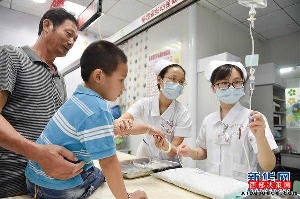 醫(yī)改地方在行動。2016年8月,首期福建省內(nèi)10家公立醫(yī)療機(jī)構(gòu)正式簽訂協(xié)議,成立福建首個婦幼醫(yī)聯(lián)體。圖為在福建省婦幼保健院,醫(yī)護(hù)人員為患兒打點滴。