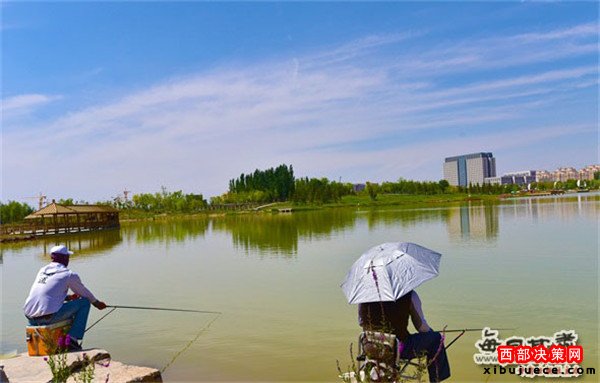 9月4日,“文博會(huì)網(wǎng)絡(luò)宣傳周”采訪團(tuán)75家媒體近百名記者一行走進(jìn)蘭州新區(qū)時(shí),就被碧波蕩漾的2號(hào)湖濱區(qū)所吸引,湖邊盛開著紅的、黃的、紫的鮮花,湖里隱約可見(jiàn)各種彩色的錦鯉,游人或愜意地在湖邊垂釣,或聚集在觀景臺(tái)欣賞音樂(lè)噴泉,或悠然自得地泛舟湖上。