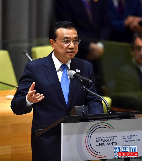 國(guó)務(wù)院總理李克強(qiáng)當(dāng)?shù)貢r(shí)間19日上午在紐約聯(lián)合國(guó)總部出席第71屆聯(lián)大解決難民和移民大規(guī)模流動(dòng)問(wèn)題高級(jí)別會(huì)議并發(fā)言。
