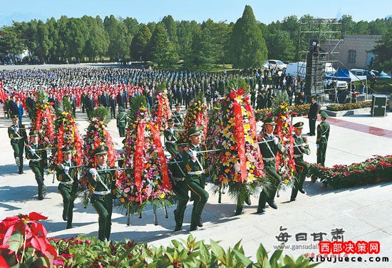 省領導王三運、林鐸、馮健身、吳德剛、虞海燕、李建華、李榮燦、王璽玉、梁言順、馬世忠、劉萬龍、羅笑虎、嘉木樣·洛桑久美·圖丹卻吉尼瑪、周多明、李慧、馬青林、黃強、夏紅民、楊子興、劉立軍、張津梁、栗震亞、張世珍、張景輝、李沛文、路志強、鄒建雄、袁占亭、王乘,駐甘部隊領導劉健、徐忠波、楊志斌、李軍,抗戰(zhàn)老兵及省城各界代表一起出席公祭儀式。