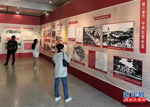 10月8日,參觀者在甘肅省博物館觀看主題展覽。當(dāng)日,甘肅省紀(jì)念紅軍長征勝利80周年主題展覽在甘肅省博物館開展。展覽以“弘揚長征精神堅定理想信念”為主題,展示紅軍長征的光輝歷史,展現(xiàn)了紅軍長征的光輝征程。