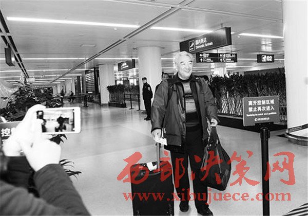 《生命如歌》男一號董懷玉走出候機(jī)樓。