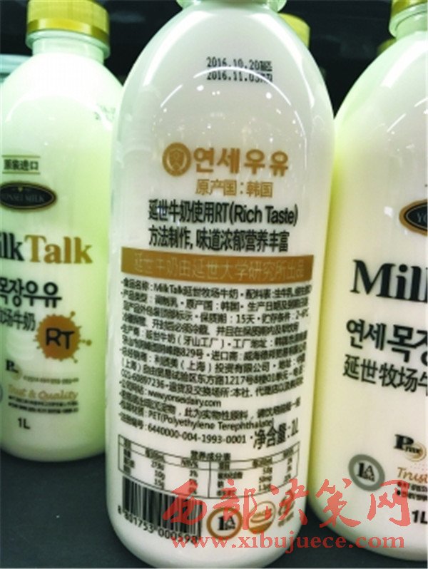在北京某高端超市,最為集中的原裝進(jìn)口奶來自于韓國,南陽牧場牛奶、延世牧場牛奶、濟(jì)州樂活牛奶三款牛奶是超市銷售人員介紹的產(chǎn)品中賣得最火的。不過,這三款牛奶有一個(gè)共同的特點(diǎn),就是產(chǎn)品類型均為調(diào)制乳。