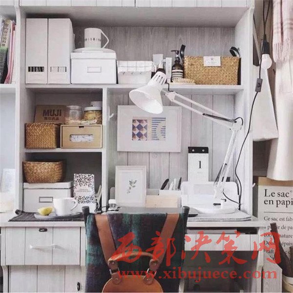 Stefny將原來(lái)和書桌同排的臉盆架移至與門同排,扯了塊布將臉盆架遮起來(lái)了,以防顏色不一的臉盆破壞美觀,同時(shí)在書桌和臉盆架之間騰出了一塊掛衣空間。