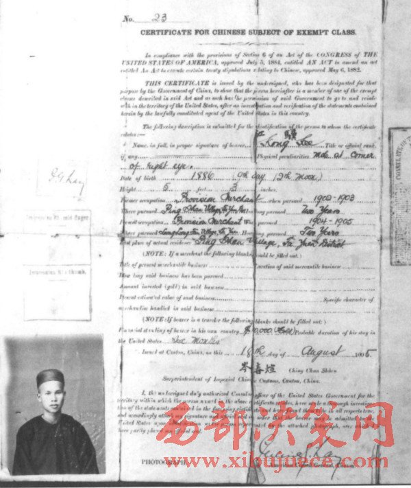 如此看來,他是一位了不起的地方富商。江驥的太和商店主要經(jīng)營(yíng)雜貨貿(mào)易。因此,他向廣州政府申請(qǐng)去美國(guó)游歷,開開眼界。雖然1905年是美國(guó)百年排華運(yùn)動(dòng)的高潮年,而且美國(guó)政府明令禁止“華工”入境。就在江驥申請(qǐng)游美護(hù)照的前一個(gè)月,中國(guó)爆發(fā)了聲勢(shì)浩大的抵制美貨運(yùn)動(dòng),其目的就是抗議美國(guó)壓迫華僑。但是,美國(guó)是允許中國(guó)商人入境游歷的,像江驥這樣的廣州富商,更是歡迎。所以,兩廣總督岑春煊會(huì)同美國(guó)駐廣州總領(lǐng)事雷伏禮在1905年8月18日分別在江驥的中國(guó)護(hù)照了簽名,準(zhǔn)許其赴美游歷。