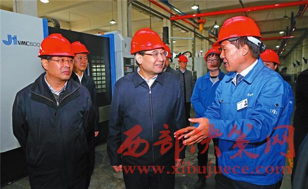 11月19日,省長(zhǎng)胡和平在永壽縣陜西秦航機(jī)械制造公司向企業(yè)負(fù)責(zé)人詢問(wèn)技術(shù)工藝,了解產(chǎn)品前景。