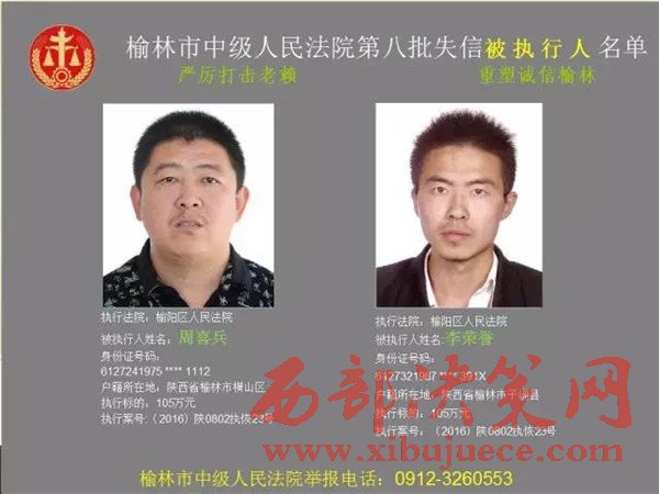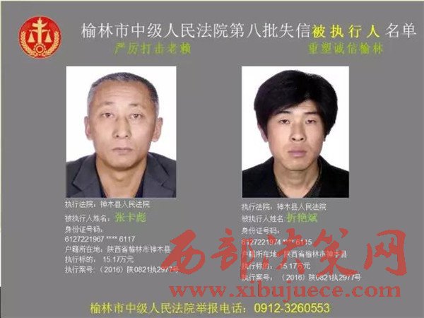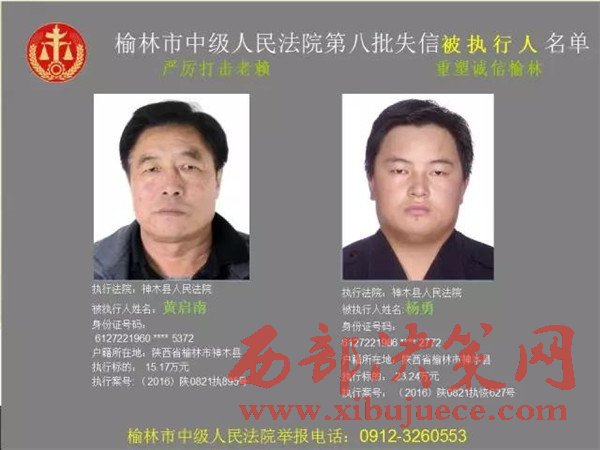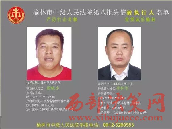 榆林中院最新發(fā)布第八批失信被執(zhí)行人"黑名單"