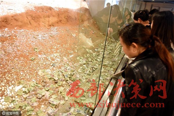 在浙江杭州雷峰塔地宮遺址,不少前來參觀的游客都往遺址內(nèi)扔錢。