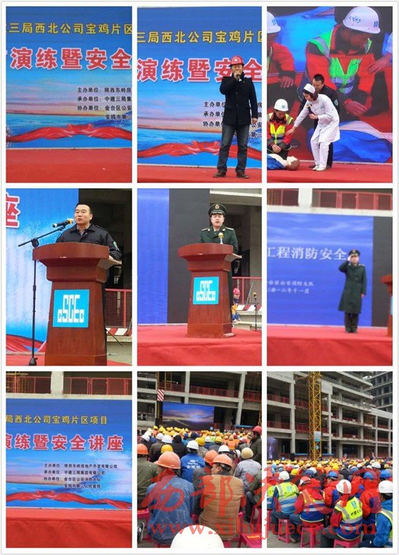 西部決策網(wǎng)訊(帥華鋒 李亮亮)11月24日下午,為促進施工現(xiàn)場消防安全管理,營造人人重視消防的良好氛圍,保障冬季施工安全,中建三局在寶雞中央金融文化商務(wù)區(qū)聯(lián)合舉行“冬季施工消防安全警鐘長鳴”為主題的消防安全知識講座、模擬消防急救演練,使在場的建設(shè)者們真正體會到了做好冬季施工消防安全的重要性和必要性。東嶺地產(chǎn)總公司各項目部、金臺消防大隊、金臺區(qū)質(zhì)檢站、寶雞市第三人民醫(yī)院、全體參建單位施工人員等500余人參加了此次活動。