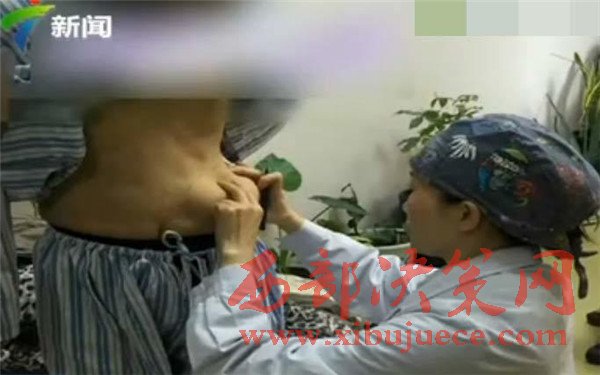 醫(yī)生說(shuō),這位女士使用的隆胸材料叫奧美定,2006年國(guó)家就禁止使用了。奧美定一方面致癌,另一方面具有游走性,與人體是不相容的,做各種運(yùn)動(dòng)的時(shí)候腔隙可能會(huì)打開,然后就跑道肚子上,腋下等部位。