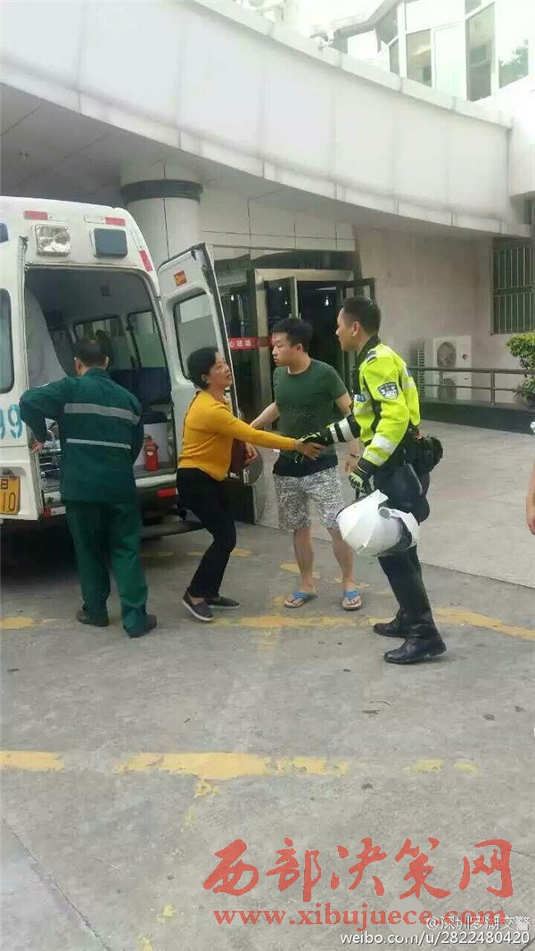 據(jù)現(xiàn)場目擊民眾@小蟲阿寶他爹:這輛救護車應該走的丹平快速隧道,交警鐵騎開路,所有的車都自覺往兩邊靠,在兩排車道中間讓出了一條救命通道。我當時就在隧道內(nèi)。圖為家屬感謝鐵騎隊員。