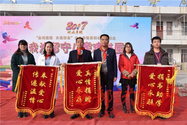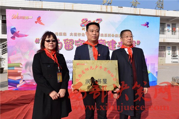 陜西省陽光少年資助協(xié)會顧問王余、會長王鳳英、秘書長溫向林、理事馬強、副會長張弘強、李江、辦公室主任王芷熹、會員代表王潤梅等;愛心人士河南電視臺睛彩中原欄目記者張文興、陜西源邦實業(yè)集團王源、劉楊等愛心團前往參加,為孩子們帶去愛心人士捐贈的一批課內(nèi)外書籍,并建成“潤鴻書屋”,藏書六百余本。此外,還為該校多名建檔立卡的貧困家庭學生送去書包、文具、手套、圍巾等學習生活用品。