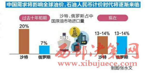 需求決定商品價值。隨著中國對石油需求的加大,在全球的石油采購將繼續(xù)呈現(xiàn)增長態(tài)勢,而人民幣作為購買石油的主流貨幣會越來越被更多石油輸出國所接受,石油人民幣計價時代將逐漸來臨。