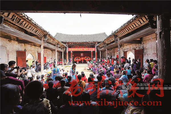 梅塘村——這個(gè)廣西“千村萬(wàn)戶文藝惠民工程”的彩調(diào)·歌舞村,因?yàn)橐蝗耗芨枭莆璧?ldquo;文藝村民”而小有名氣。據(jù)說(shuō),村里經(jīng)常舉行文藝演出,隨處可見(jiàn)哼著調(diào)調(diào)的村民。唱彩調(diào)、扭秧歌、跳廣場(chǎng)舞……這不僅成了村民消遣的良方,還是村民追求更高精神文化生活的方式。