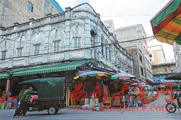 談起防城港市,人們最深的印象是海岸邊氣派的港口,海灣間林立的高樓。然而,當(dāng)你不經(jīng)意間步入防城老城區(qū),便會(huì)驚訝地發(fā)現(xiàn)——一條條幽深的老街,一座座陳舊的騎樓,一棟棟頹廢的公館,在這里與靜靜流淌的江水相伴,將來訪者拉回到早已消逝的歲月……