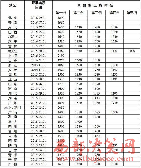 12月13日,人社部勞動關(guān)系司公布《全國各地區(qū)月最低工資標(biāo)準(zhǔn)情況》。