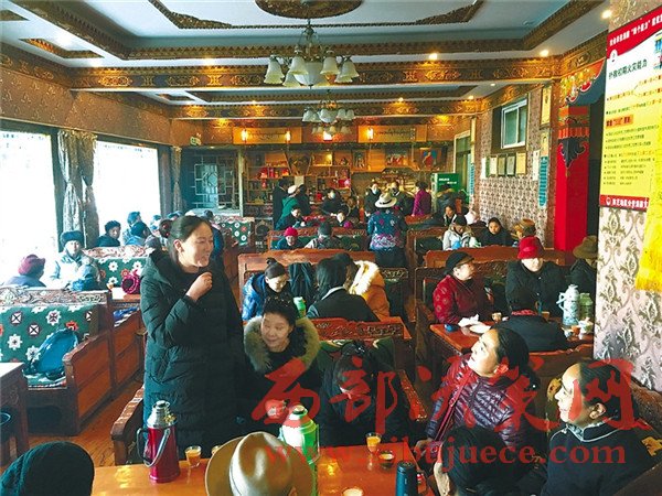 圖為林芝市巴宜區(qū)八一鎮(zhèn)德吉路“童嘎茶館”內,藏族阿佳們正在小聚,悠閑地品嘗甜茶。