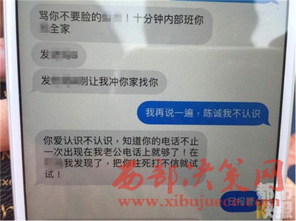 據(jù)記者了解,王女士今年32歲,家住西安市高新區(qū),看王女士收到的短信上,不要臉等辱罵性的字眼比比皆是。而這件事要從昨晚王女士接到的一個(gè)陌生女子的電話說(shuō)起。