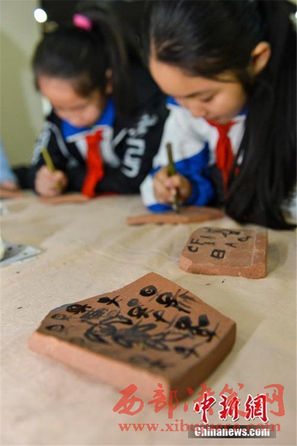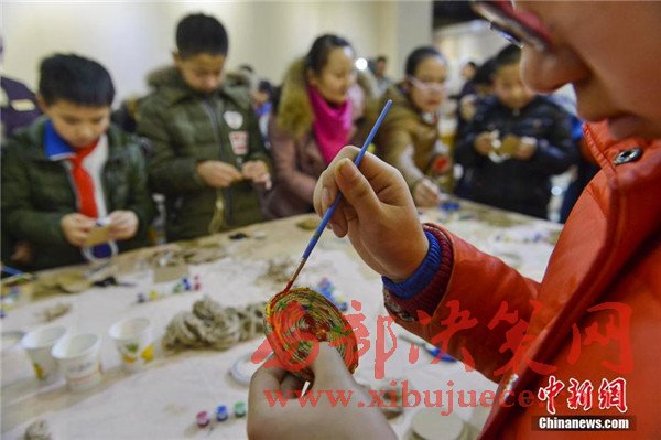 前來觀展的小學生在參觀之余,動手制作原始陶器,用半坡民族獨特的印染方式印染作品,體驗“鉆木取火”,感受6000年前的半坡母系氏族人的生活狀態(tài)。