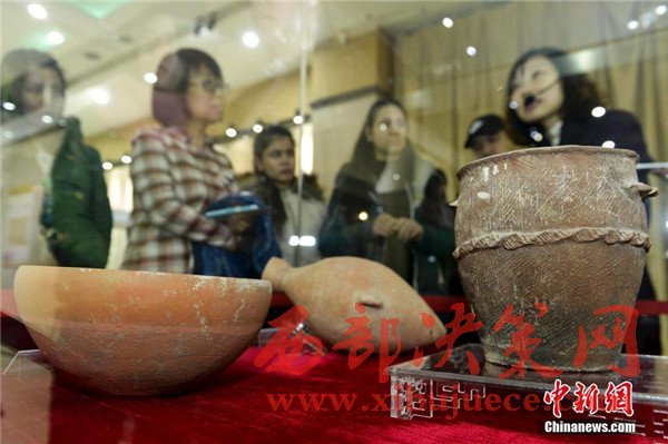 新疆展出半坡遺址文物 小學生繪制陶器體驗歷史