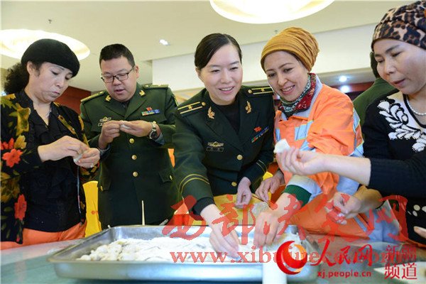 烏魯木齊邊檢站官兵與"親戚"一同包鉸子吃團(tuán)圓飯