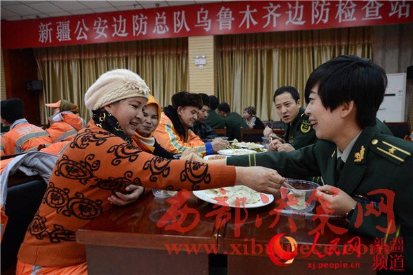 包餃子、聊家常、串門(mén)子……12月16日,新疆邊防總隊(duì)烏魯木齊邊防檢查站迎來(lái)了烏魯木齊市迎賓路街道辦的41位環(huán)衛(wèi)工人們,并與他們結(jié)成了對(duì)子,成為了“親戚”。