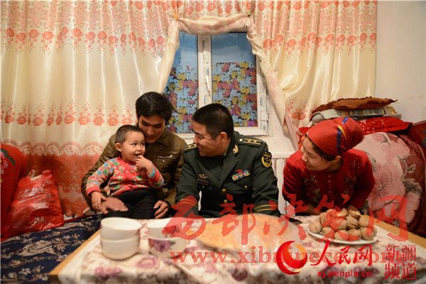烏魯木齊邊檢站官兵到“親戚”家慰問(wèn)。