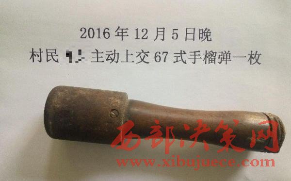 紫陽(yáng)東木鎮(zhèn)村民冉某來(lái)到東木派出所,主動(dòng)上交了一個(gè)自己一直用來(lái)砸核桃的物件,民警一看吃了一驚,這個(gè)東西竟然是67式手榴彈!民警立即進(jìn)行了檢查,該手榴彈雖然沒(méi)有拉火裝置,但是不能確定彈體內(nèi)是否還有炸藥。