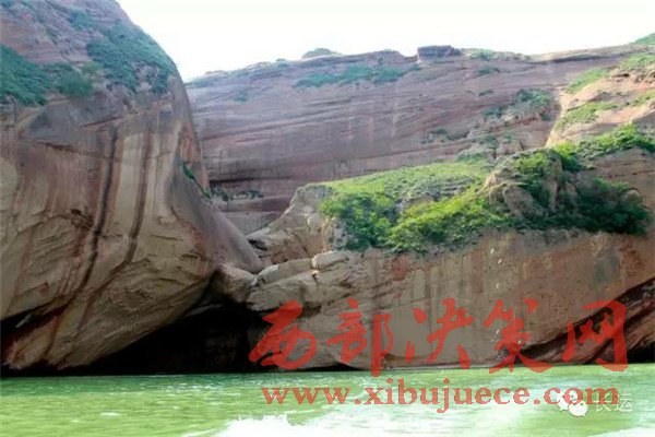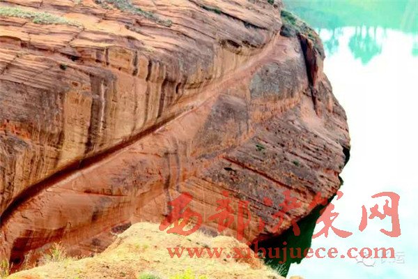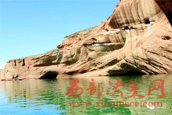 靖邊八景之一的“紅崖曉鏡”就在現(xiàn)在的水上丹霞的位置。靖邊縣志記載,“在杜家大臺兩岸,紅峽對峙,中留一線,曉日初升,恍是高樓仙境”。這里過去叫草溝灣,曾是水草豐美,水鳥棲息,水清如鏡,兩岸赤壁對峙,為靖邊的一大景觀。
