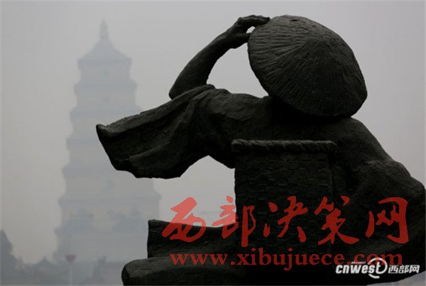 重度霧霾下的大雁塔失去了千年古色,稍遠(yuǎn)一點(diǎn)看大雁塔若隱若現(xiàn),再走遠(yuǎn)一點(diǎn)大雁塔在視線中消失。