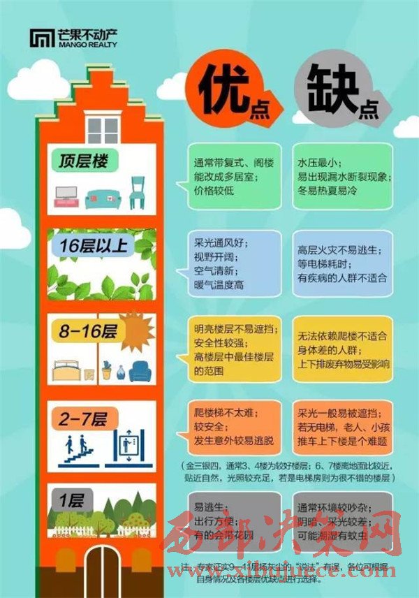 其實數(shù)字本身沒有什么特殊含義,卻成了疑神辟邪的犧牲品,實在令人哭笑不得。除開這些,在樓層的高低選擇上很多人也有不同的看法。有人說高的空氣好、日照多、風景佳;有人言低的接地氣、出行快、更安全,讓我們一起來看看高低樓層各有哪些利弊。