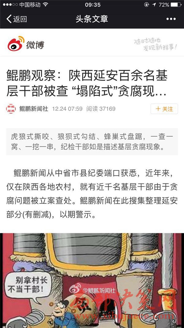 據(jù)微博 鯤鵬新聞社爆料 從中省市縣紀委端口獲悉,近年來,僅在陜西各地農村,就有近千名基層干部由于貪腐問題被立案查處。鯤鵬新聞在此搜集整理延安部分(有刪減),以期警示。