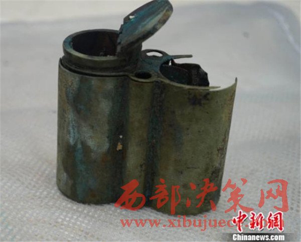 圖為“呂義泰白銅壽紋水煙袋”,缺水斗、吸管。外筒上下口沿云雷紋,中腹團(tuán)壽紋。煙倉內(nèi)蓋上刻有“漢鎮(zhèn)呂義泰劉盛”字樣。寬8.8,殘高8.8 ,單筒徑4.1厘米。“丹東一號(hào)”水下考古隊(duì)供圖