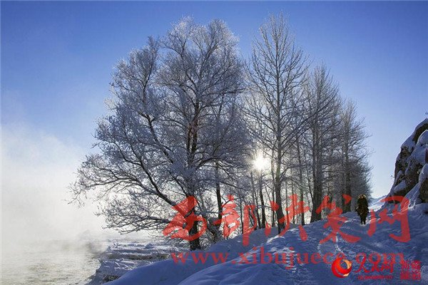 冬日的新疆布爾津是潔白的冰雪世界,銀裝素裹,玉樹瓊枝,小城披上了晶瑩潔凈的白紗。霧凇晶瑩剔透,蔚為奇觀,如此夢(mèng)幻世界,讓人流連忘返。“霧凇小鎮(zhèn)”沖乎爾,因霧凇壯觀奇特而聞名,每年都有國(guó)內(nèi)外攝影家和旅游愛好者不遠(yuǎn)千里為賞霧凇而來(lái)。每到冬季氣溫下降,沖乎爾盆地銀裝素裹,布爾津河谷煙籠寒水。河谷兩岸都掛滿了霧凇,滿山遍野的霧凇如禮花般綻放,雪的白色似乎掩蓋不住它們即將綻放的色彩,棵棵白樺宛若玉枝垂掛,簇簇松針恰似銀菊怒放,晶瑩多姿。