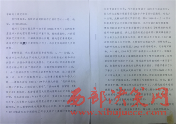 2016年12月14日,魯鋼軍來到旬陽(yáng)縣紀(jì)委,向現(xiàn)任旬陽(yáng)縣紀(jì)委書記付波反映該事件,付書記給予書面登記,并口頭承諾盡快解決。