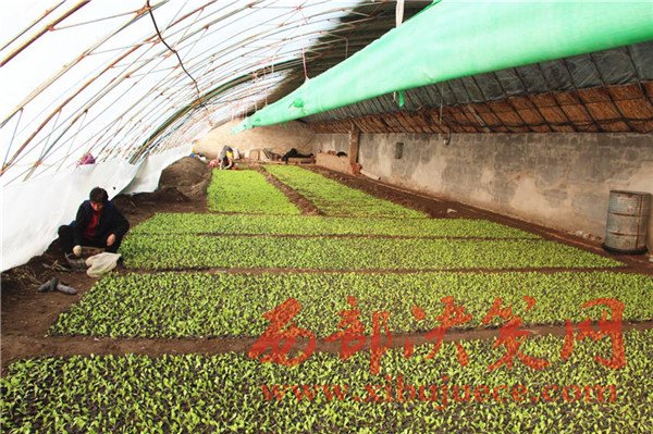 在王磊家的大棚內(nèi),滿眼的綠色郁郁蔥蔥,棚內(nèi)大約培育了十萬(wàn)余株蔬菜幼苗,有萵筍、蓮花白,棚里光線充足,空氣濕潤(rùn),室內(nèi)溫度高達(dá)零上26攝氏度,為菜苗提供了良好的生長(zhǎng)條件。隨處可見農(nóng)民忙碌的身影,有的在移苗,有的在為營(yíng)養(yǎng)袋裝土,有的在裝穴盤,動(dòng)作嫻熟、井井有條。