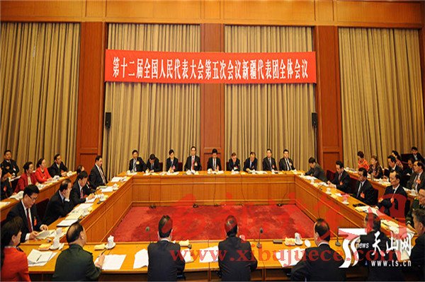 3月5日下午,出席十二屆全國人大五次會議的新疆代表團舉行全體會議,審議政府工作報告。