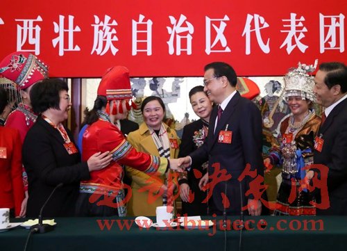 【李克強在廣西團巧借“劉三姐”祝福全國女同胞】三八婦女節(jié)這天,李克強來到廣西代表團參加審議報告。他首先祝在場的女代表及女同胞節(jié)日快樂。總理說:“廣西是劉三姐的家鄉(xiāng),她的歌聲至今余音繚繞,代表了女同胞美好的形象。我在這里向你們,并通過你們向全國女同胞致以節(jié)日的問候和衷心的祝福。”