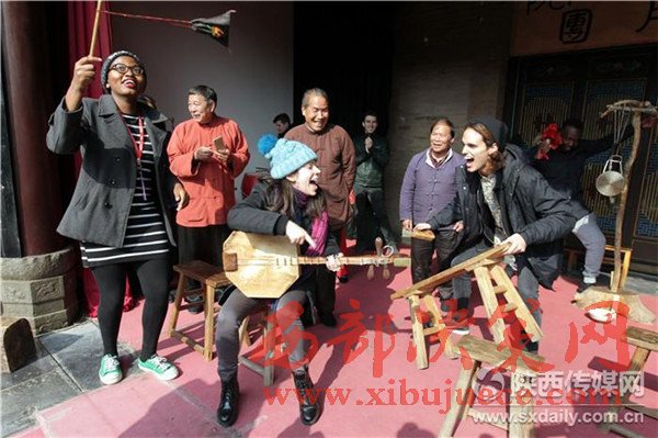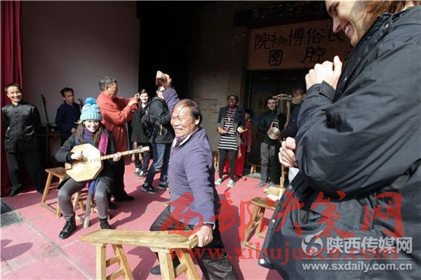 11月15日,北京大學燕京學堂的丹麥、以色列等42個國家的100多名外國留學生,來到西安了解中國傳統(tǒng)文化和城市發(fā)展及變化,在關中民俗藝術博物院,“老外”對華陰老腔產生濃厚興趣,現(xiàn)場向老藝人學唱華陰老腔。