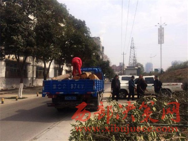 據(jù)了解,砍樹的人講這個地方要做工程,有人請他們把這些樹木砍了。所砍木料被賣給了木材加工廠,現(xiàn)場的車輛及裝車人員都是渭濱區(qū)高家村某木材廠的人員??硺洮F(xiàn)場未發(fā)現(xiàn)有市政和園林環(huán)衛(wèi)部門的管理人員。