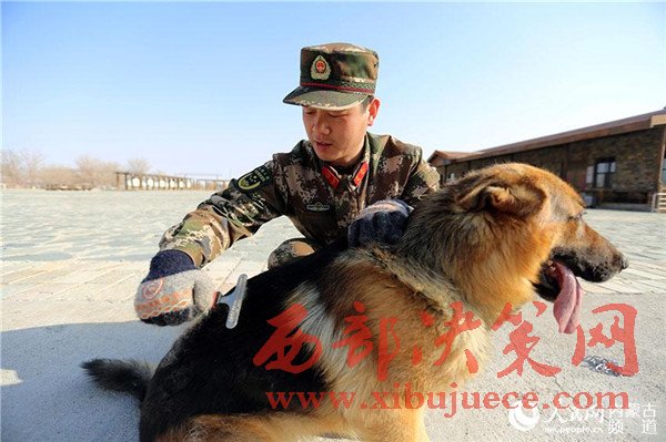 隨著天氣轉(zhuǎn)暖,警犬開始換毛,訓導(dǎo)員每天要給警犬梳毛。