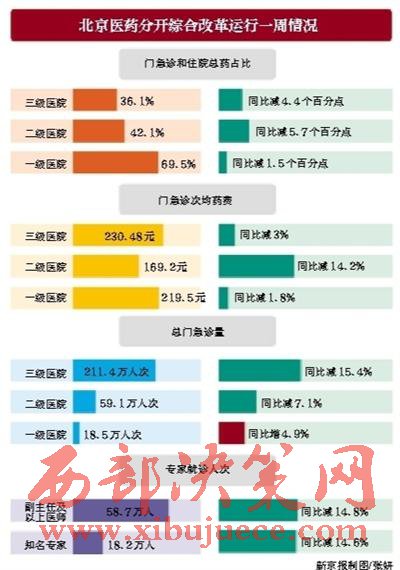 北京市衛(wèi)計委稱,監(jiān)測結果顯示,各醫(yī)療機構藥占比和藥費均呈下降趨勢。