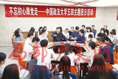 5月3日,中共中央總書(shū)記、國(guó)家主席、中央軍委主席習(xí)近平來(lái)到中國(guó)政法大學(xué)考察。這是習(xí)近平在學(xué)生活動(dòng)中心參加民商經(jīng)濟(jì)法學(xué)院本科二年級(jí)2班團(tuán)支部開(kāi)展的“不忘初心跟黨走”主題團(tuán)日活動(dòng)。