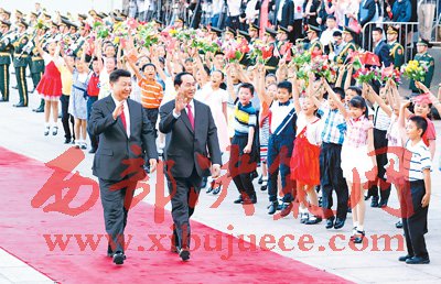 國家主席習近平11日在人民大會堂同越南國家主席陳大光舉行會談。兩國元首一致同意保持雙邊關系積極發(fā)展勢頭,推進各領域合作,推動中越全面戰(zhàn)略合作伙伴關系邁上新臺階,為兩國和兩國人民帶來更多實實在在利益。