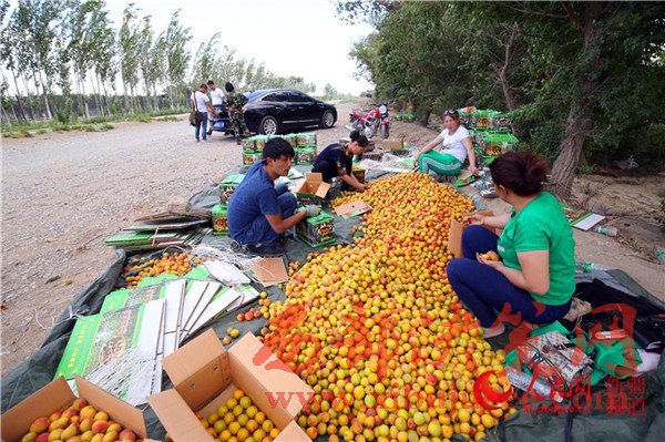 走進(jìn)周振峰的杏院子,紅彤彤的杏子已經(jīng)壓彎了枝頭,大家正在緊張采摘。在杏園外,從烏魯木齊來(lái)的客商買(mǎi)買(mǎi)提·吐?tīng)栠d也和自己的員工一起挑揀品質(zhì)較好的杏子進(jìn)行包裝。他告訴筆者,因?yàn)橥锌诉d的杏子每年都比其他地方成熟的要早,所以他每年都要來(lái)托克遜收購(gòu)杏子,每年最少收購(gòu)400噸。