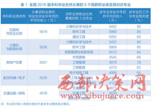近日,麥可思研究院發(fā)布了一份有關(guān)中國大學(xué)畢業(yè)生收入情況的調(diào)查報告。數(shù)據(jù)顯示,在2016屆本科畢業(yè)生從事的職業(yè)類別中,“互聯(lián)網(wǎng)開發(fā)及應(yīng)用”領(lǐng)跑職業(yè)高薪榜,畢業(yè)半年后平均月薪達5679元,此外,“房地產(chǎn)經(jīng)營”也在高薪榜前列。