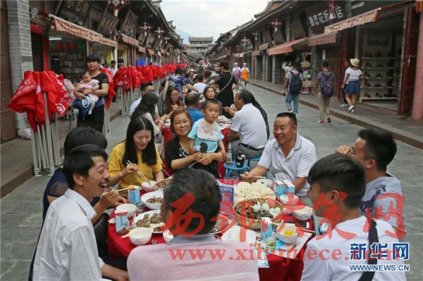 當(dāng)日是端午節(jié),四川省涼山彝族自治州會(huì)理縣會(huì)理古城舉行“萬(wàn)人藥根宴”,約1.5萬(wàn)人共同在古城內(nèi)1500張桌上就餐。