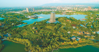 西安浐灞生態(tài)區(qū)鳥(niǎo)瞰。強(qiáng)宏攝