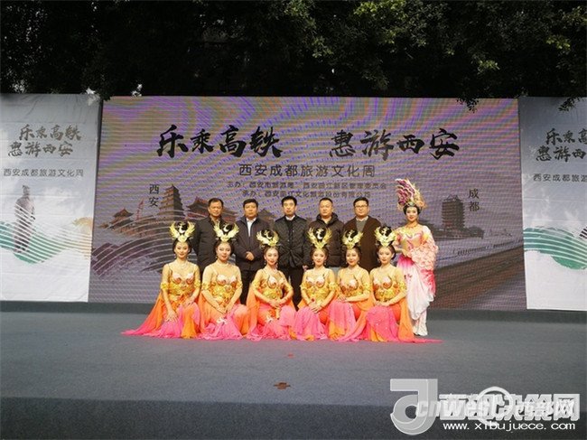 2017年12月13-17日,由西安市旅游發(fā)展委員會、西安曲江新區(qū)管理委員會主辦,西安曲江文化旅游股份有限公司承辦的“樂乘高鐵·惠游西安”西安5折歡游季西成高鐵系列路演活動(dòng),分別在廣元利州廣場、綿陽鐵牛廣場、成都寬窄巷子?xùn)|廣場、重慶觀音橋廣場等地精彩上演。巡演向四川、重慶的父老鄉(xiāng)親們介紹了西安豐富的旅游資源,展現(xiàn)了千年古都地靈人杰的文化底蘊(yùn)和生氣盎然的城市魅力。四城路演活動(dòng)共吸引了近五萬當(dāng)?shù)厥忻裼慰汀?